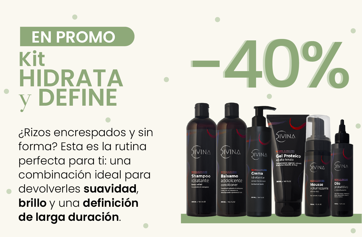 Un paso imprescindible en la rutina de cuidado del cabello de todo tipo de cabello ondulado y rizado: la Crema Hidratante Leave-In sella las cutículas del cabello, manteniéndolo suave e hidratado durante mucho tiempo, sin apelmazar y de forma completamente natural.